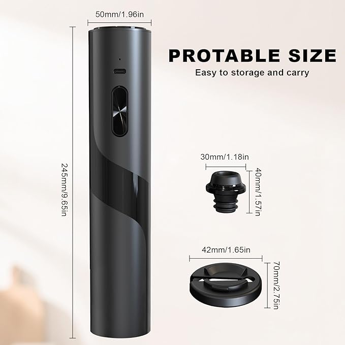 - š·ćCORDLESS & EFFICIENTć Our cordless electric wine opener compatible with most wine bottles. It can safely remove corks in just about 5-7 seconds. Open up to 30-40 bottles on a full charge. Please charge it fully before using it for the first use