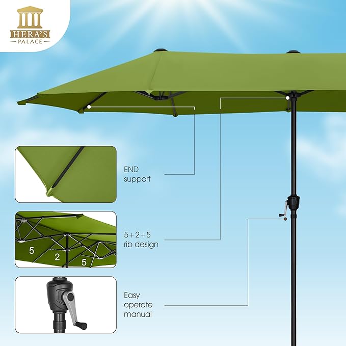 HERA'S PALACE 13 ft Patio Umbrella Double-Sided Outdoor Market Umbrella Rectangular Large with Crank for Patio Shade Outside Deck or Pool, Lime