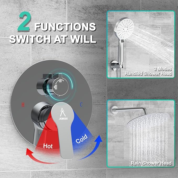 - 【HIGH QUALITY MATERIALS】This shower head and handle set has a solid all-metal construction. The mixing valve is made of solid brass and the multi-layer plating passes the salt spray test to reduce corrosion of the shower's surface in long-term humid place, featuring no rust and long life, the fixed place of the shower top spray can be rotated 360 degrees, while the 304 stainless steel rain shower head with silicone nozzles wipes away mineral deposits with a simple wipe.