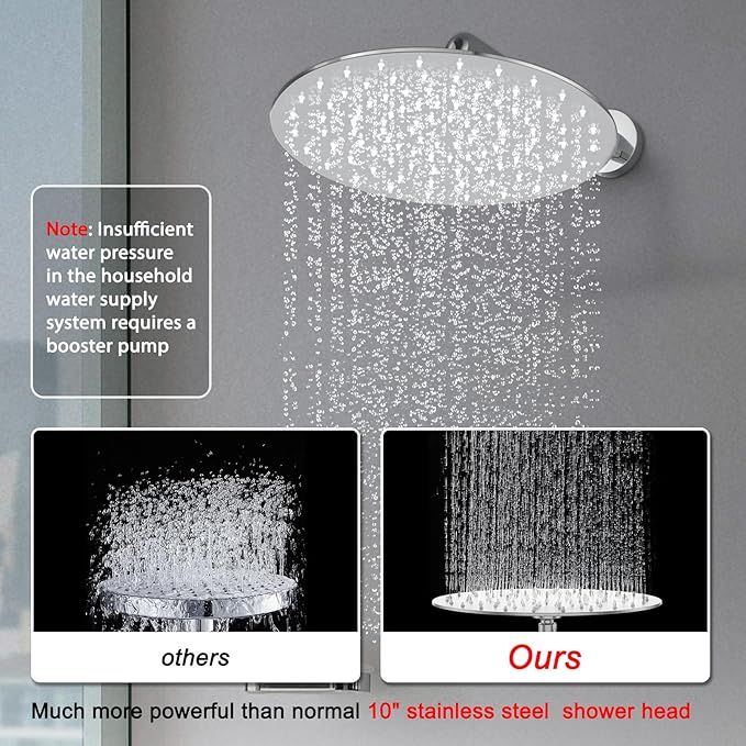 - 【AIR PRESSURIZATION】This shower faucet set features innovative air technology where the rain shower head mixes water with air, increasing water pressure to 100% and simulating natural rainfall to provide you with a natural contact water experience.