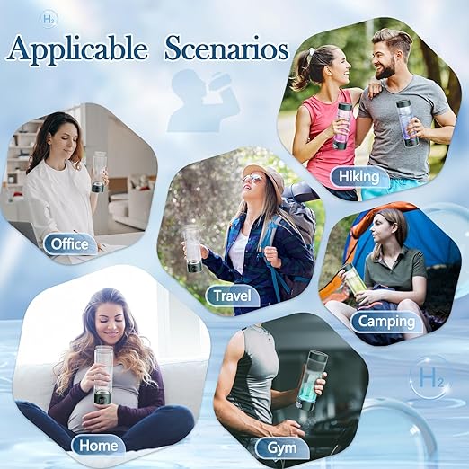 - 【Easy to Use and Clean】The hydrogen water bottle makes it effortless to enjoy hydrogen-rich water. Simply pour 80% of water into the bottle, Just press lightly, the blue light on the bottom lights up and the hydrogen gas decomposes from the water. Equipped with a unique design, both the bottom and top can be easily unscrewed for easy cleaning, hydrogen water maker provide you with the best hydrogen-rich water experience.
