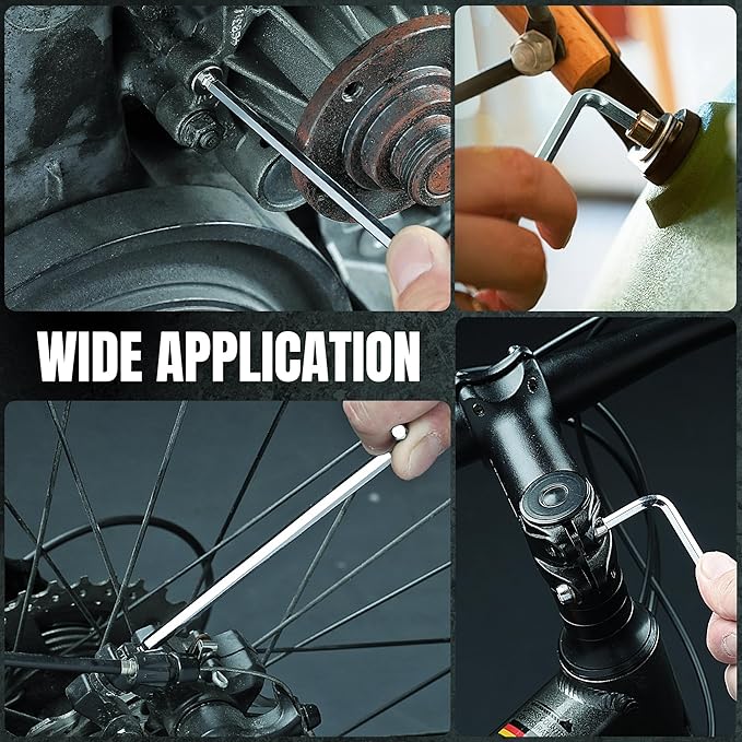 - L-shaped long side design provides extended reach and enhanced leverage and torque, make you more labor-saving. Chamfered hex tip ensures precise fastener engagement, reduces the wear of the hex wrenches and fastener head