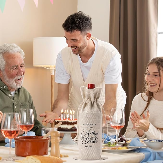- 【Bride Mother Gifts Ideas】 Don't just stop at bride mother wine bag bottles! This fun bride mother wine bag is the perfect addition to a engagement wedding party, and also it's a perfect gifts idea, as it not only decorates the bottle, but is also suitable for storing all kinds of holiday gifts, make it a must every time you celebrate a variety of festivals and events! Make every gathering a ritual!