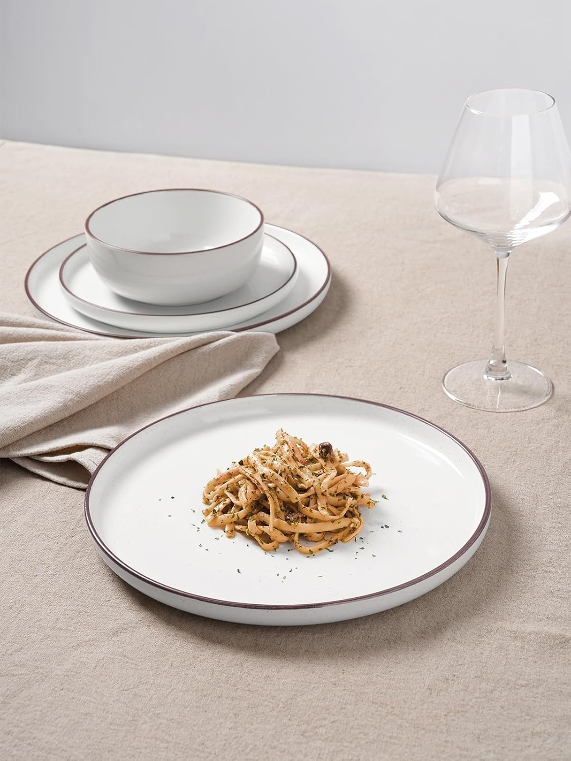 - 【FOOD GRADE NATURAL GLAZE】All of our dinnerware sets are made of food grade glaze. You can safely use them to serve steaks, salads or desserts, no need to worry about any harmful substances leaching into the food.