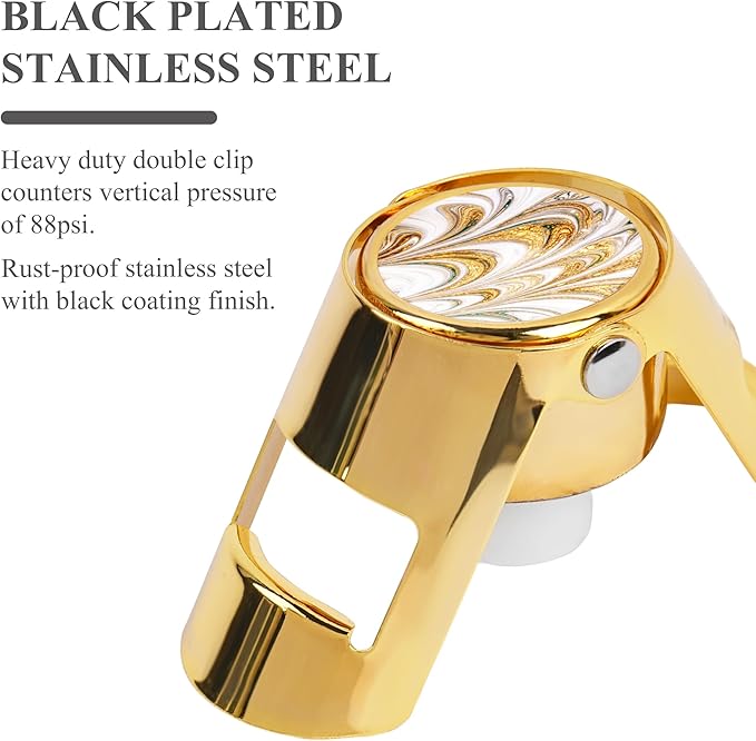 LIZIMANDU Champagne Stopper, Stainless Steel Bottle Plug Sealer for Sparkling Wine, Superior Leak,keeps Wine, Champagne, Prosecco, Cava, and Sparkling Wine fresh longer(1-Gold Splash Ink)