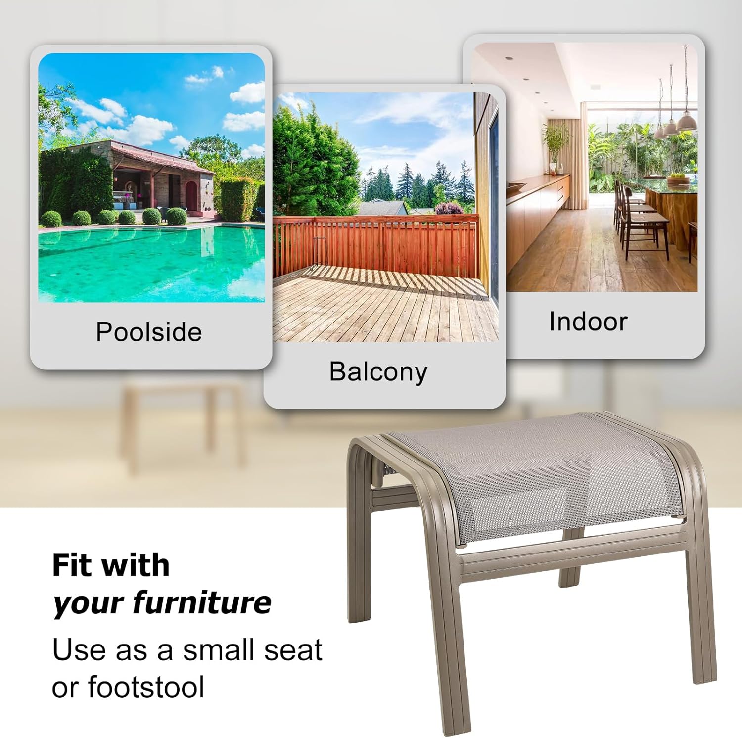 - Solid Frame & Textilene Fabric-Structure of the patio ottomans are made of sturdy aluminum and resin textliene, so the ottomans are stable and resilient.In addition, the powder coated surface can prevent chair from rusting for long term use.