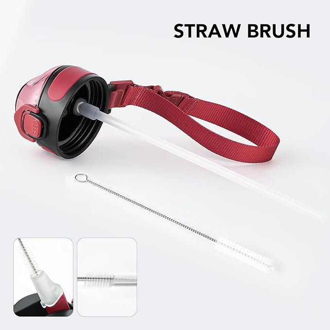 - Humanized Design: The one-hand operation button allows for easy access to water. Highly suitable for boys and girls, and all ages. The flip-top lid of the insulated thermos is used a secure lock, making it dust-free and leak-proof. The included straw brush makes maintaining your bottle's cleanliness uncomplicated and efficient.
