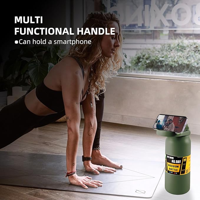- ✔【Dual Use Handle】The water jug with an expansive handle that can hold a smartphone. Crafted from material without BPA, it is robust and portable, suitable for gym, camping, hiking, travel, etc.