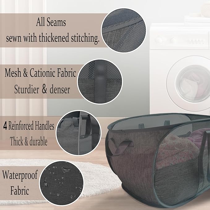 - ๐๐ฎ๐ซ๐๐๐ข๐ฅ๐ข๐ญ๐ฒ ๐๐๐ฒ๐จ๐ง๐ ๐๐จ๐ฆ๐ฉ๐๐ซ๐: Our collapsible laundry basket is meticulously crafted from mesh and cationic fabric, supported by four reinforced elastic steel wires. The seams are double stitched with thick thread. This not only guarantees durability but also boasts superior scratch and wear resistance, ensuring the laundry hamper lasts for ages
