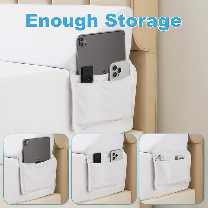 - Ample-Capacity Side Pockets: Equipped with spacious side pockets, this headboard pillow offers convenient storage for essentials like phones, remote controls, glasses. Keep your bedside oasis clutter-free and impeccably organized with this indispensable addition to your bed.