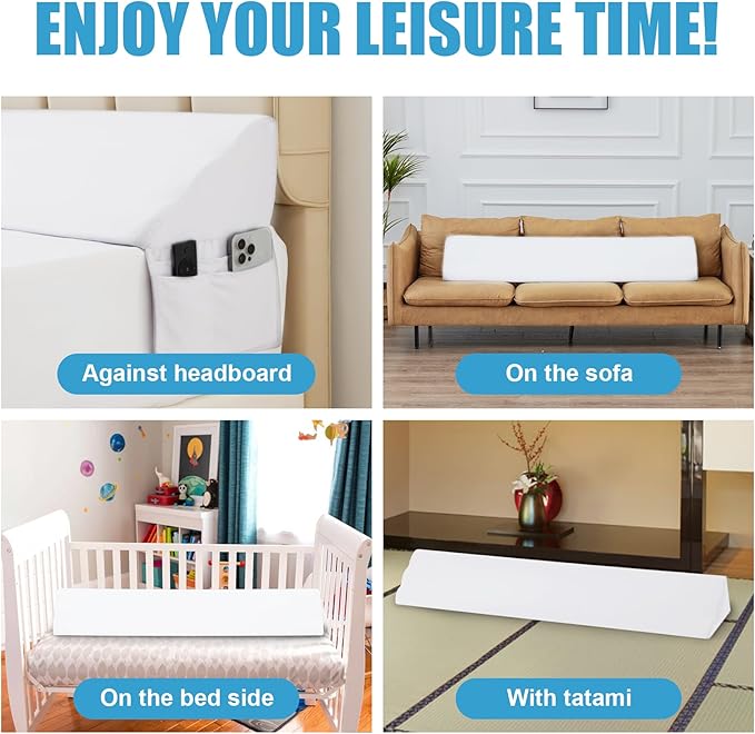 - Versatile Companion for Every Family Member: Our bed gap filler pillow effortlessly bridges the space between your headboard and mattress, effectively safeguarding against items slipping through. More than just a headboard space filler, this versatile accessory doubles as a sofa cushion support board, and bed bumper, ensuring a safe and sound sleep environment for every family member.