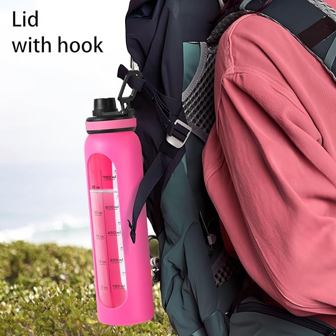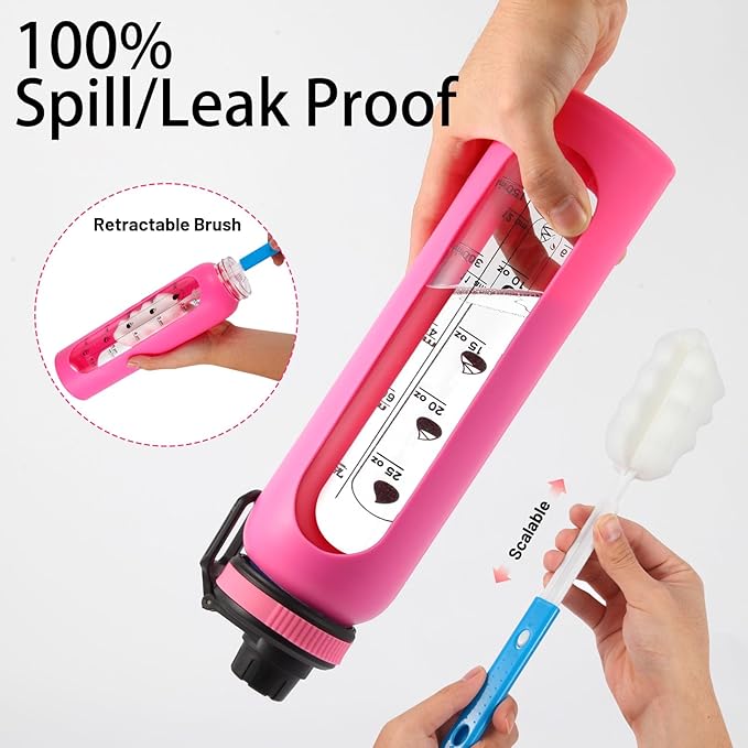 - 【Large Capacity】The bottle has a capacity of 34OZ/1L, with marked graduations up to a maximum of 26 OZ/750ML, featuring time markings