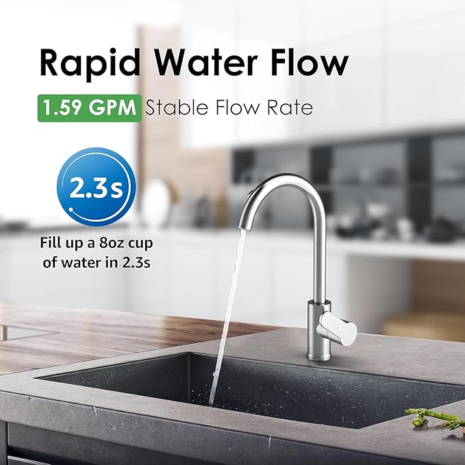 - ใ๐๐๐ฉ๐ข๐ ๐๐ง๐ ๐๐จ๐ง๐ฌ๐ข๐ฌ๐ญ๐๐ง๐ญ ๐๐ฅ๐จ๐ฐ ๐ซ๐๐ญ๐ใThe flow rate can be as high as 1.59 GPM, and you can fill a 8oz cup of water in 2.3 seconds. The ultra-high flow rate also ensures stability.