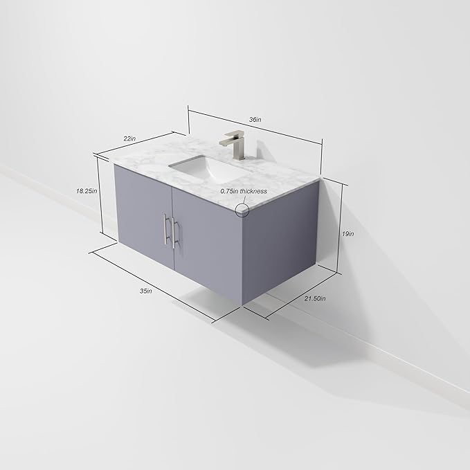 Sonoma 36" W x 22" D Dark Grey Bath Vanity & Carrara Marble Top