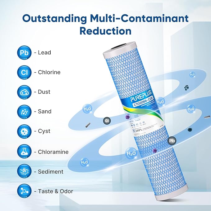 PUREPLUS 5 Micron 20" x 4.5" Whole House Lead Removal Water Filter, Enhanced Coconut Shell Activated Carbon Water Filter, Replacement Cartridge, CTO20BB-CQB, 1 PACK