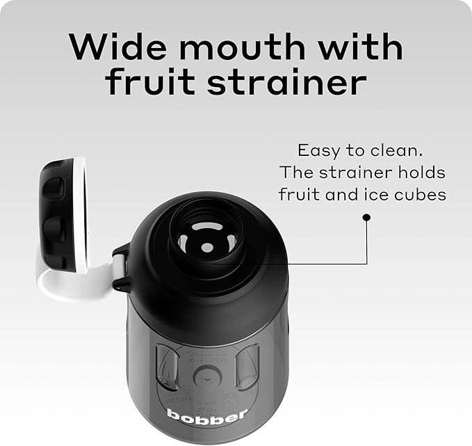 - WIDE MOUTH & FRUIT STRAINER LID: Easy to clean and refill. A built-in fruit strainer, allowing you to infuse your bpa free water bottle for gym with fruits, berries, herbs and ice cubes