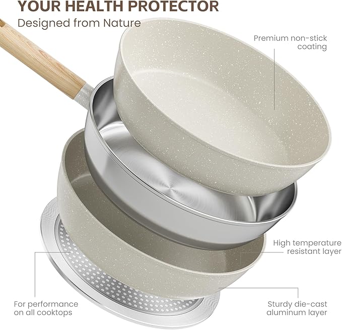 - Suitable for All Stoves: From gas to electric and induction, Akaice nonstick induction cookware sets are designed to work flawlessly on any cooktop.
