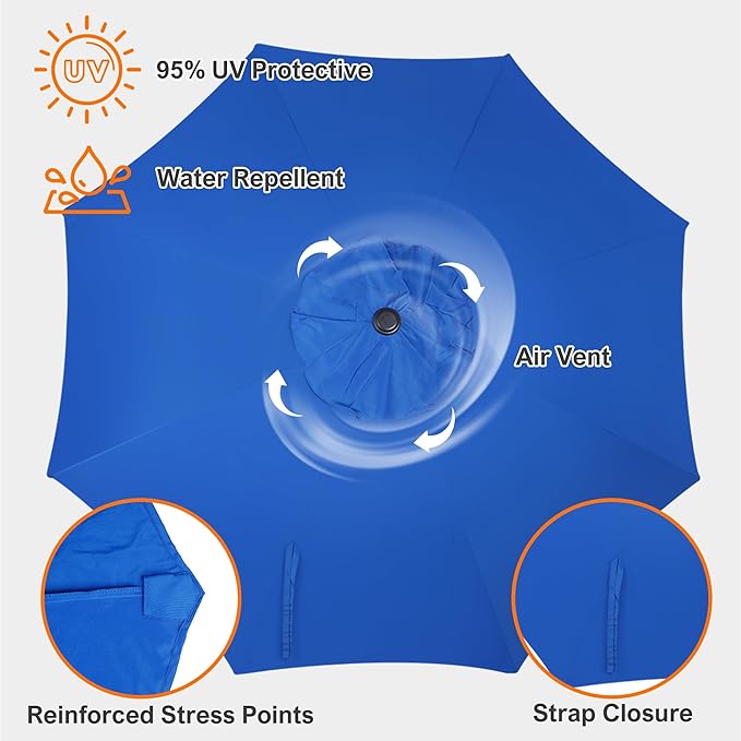 Blissun 9ft Patio Umbrella Replacement Canopy, Market Umbrella Top, Outdoor Table Umbrella Canopy for 8 Ribs, Canopy Only