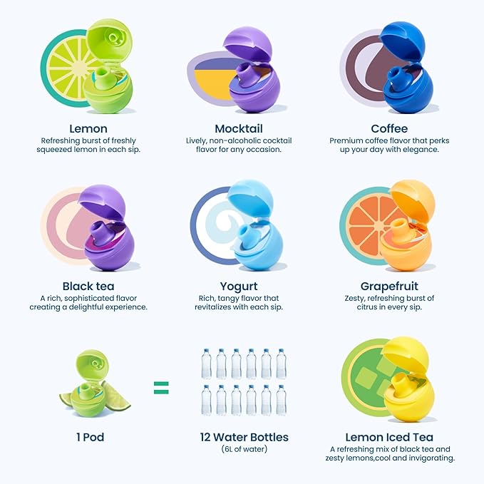 - Each ScentSips pod flavors up to 6 liters of water, or about 6 refills of a 32 oz bottle. Enhance your drinks by adding juice, milk, or other liquids. For example, add milk and use a coffee-flavored pod to create the delightful “taste” like a latte.Experiment with different combinations for exciting new flavors.