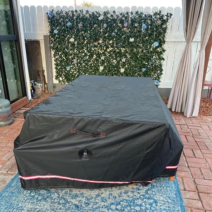 - 【Dimension and Premium Material】- measures: 64"(L) x 52"(W) x 29"(H). Heavy-duty Oxford with new upgrade PVC coating. Fits any rectangular outdoor furniture, such as dining table and chairs, benches, coffee tables, couch, or other square furniture. Please confirm the measurement of your furniture before purchasing.