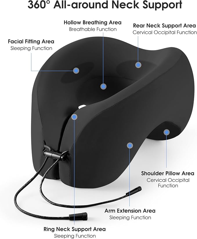 - 【2 in 1 Travel Pillow】As U-Shape Pillow, our travel pillows for airplanes offers 360° all-around neck support and helps you keep your neck and head upright to alleviate pressure and without getting any soreness during travel. As face down pillow, the travel neck pillows for airplanes is designed with a perfect 45° angle, allowing your head and neck to naturally lean forward. This airplane neck pillow decreases the pressure of your cervical vertebra.
