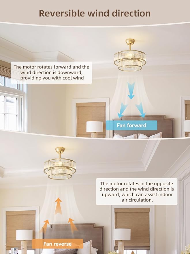 - Multiple Wind Speeds, Switch at Will: 6 wind speed adjustments, whether it is a gentle breeze or a refreshing strong wind, can be perfectly adapted. Equipped with a forward & reverse motor, whether you need cool air in hot summer or air circulation indoors in cold winter, find a comfortable air volume to meet your various needs in different seasons and usage scenarios. Because who says efficient air circulation can't be both stylish and fun? Perfect for all elegant crystal lovers!