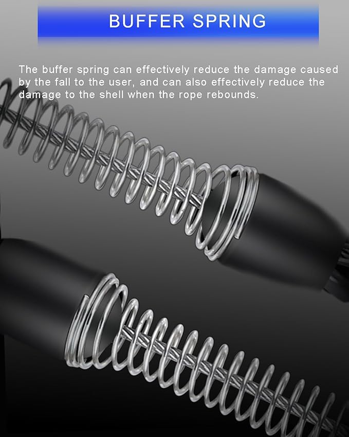 - 【BUFFER SPRING】:The buffer spring can effectively reduce the damage caused by the fall to the user, and can also effectively reduce the damage to the shell when the rope rebounds.