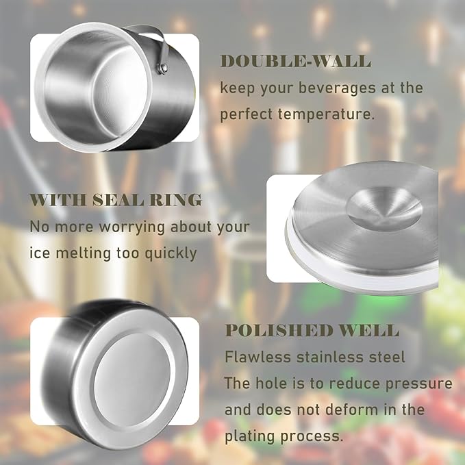 - PREMIUM MATERIAL: Crafted with food-grade stainless steel, this ice container guarantees durability and resistance to corrosion. The sleek and polished exterior adds a touch of glamour to any occasion, making it the perfect bar accessory for those stylish cocktail bars and parties.