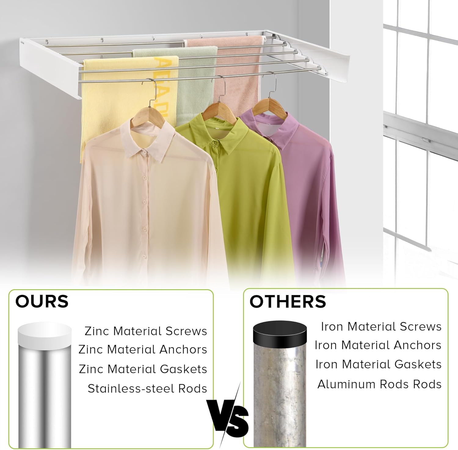 - Laundry drying rack includes an installation manual, accessories bag, and borehole locator paperboard for easy setup. In just minutes, you'll have a functional and dependable collapsible clothes drying rack.