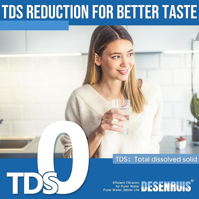 - MULTI STAGE FILTERS: The DESENRUIS water filter has a 6-stage filtration system. It can easily remove dissolved solids in water, remove impurities, reduced lead, chromium, chlorine, heavy metals and other harmful chemicals, to make the water more pure and taste better