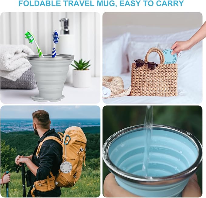 - 【Reusable】The silicone collapsible travel cup supports hand washing and machine washing, allowing for repeated use during travel, camping, hiking, and other outdoor activities.