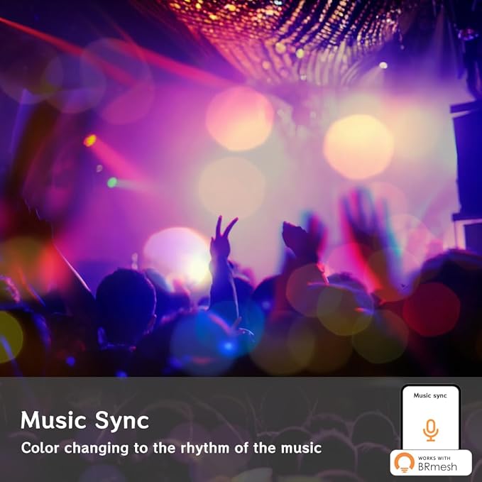 - 【 Tunable White & RGB colors】: Adjustable color temperature 2700K-6000K, CRI>90 ; 16 million RGB static colors and multiple dynamic modes for daily, mood and decorative lighting like Halloween Decorations, Christmas Decorations. You can also use BRmesh APP to set Timing function, Sync with music, Group control , Single control, DIY Scene function, DIY Flash and DIY Fade. No registration nor network required.