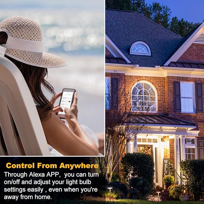 - 【Simple to set up with Alexa】Support one step pairing, just say "find device" to the speaker after turning on the led light bulbs, then Light bulbs can then be easily paired with Alexa(No need download any APP). Enjoy the smart life with voice commands then.