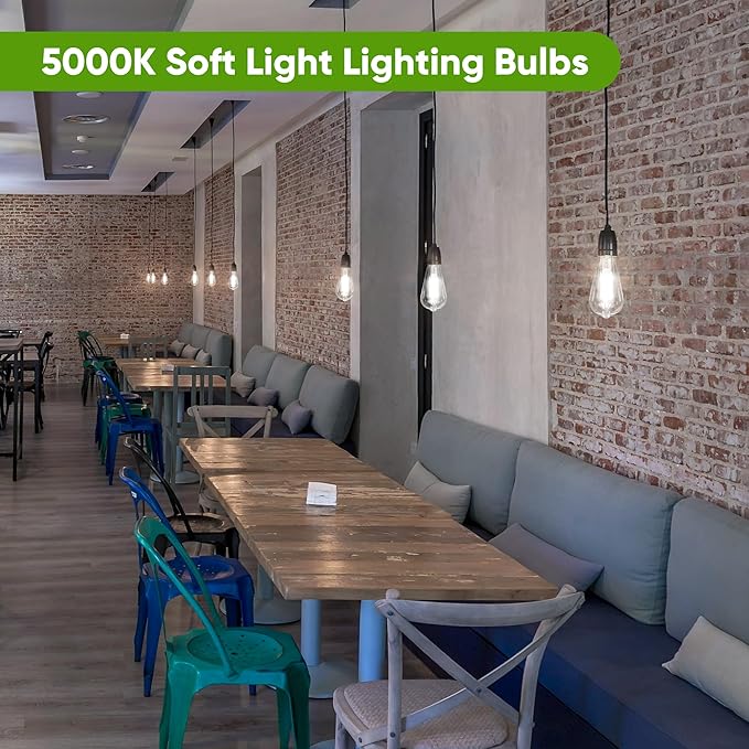 - High CRI 95+ and super brightness: Our e26 Filament bulbs have a maximum CRI 85+, which is better than 99% bulbs on the market. They can vividly realize the true color in life and enrich your visual experience. When the lights turn on, the daylight led bulbs will be at full brightness with super bright 900lumen and 5000K cool white light, emitting 360-degree lighting without dead ends.