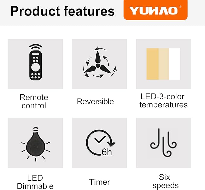 - Adjustable Wind Speed: There are six wind speed option could be adjusted, and there are two different directions when ceiling fan works,could be forward at summer and could be reverse at winter.