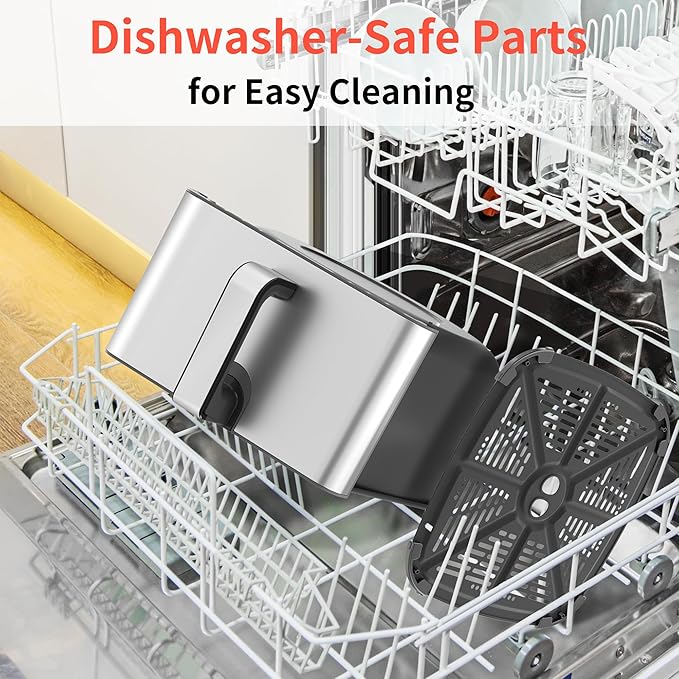 Air Fryer 10 Quart, Large Air Fryer for Families, 6 Cooking Functions AirFryer, 400°F Temp Controls in 5° Increments, Ceramic Coated Nonstick Basket and Crisper Plate, Dishwasher-Safe, 1700W, Grey