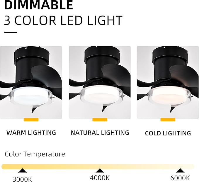 - Remote Control: Adjust the brightness of light and speed of the ceiling fan with ease from anywhere in the room. Three color temperature options can meet a variety of scenarios.