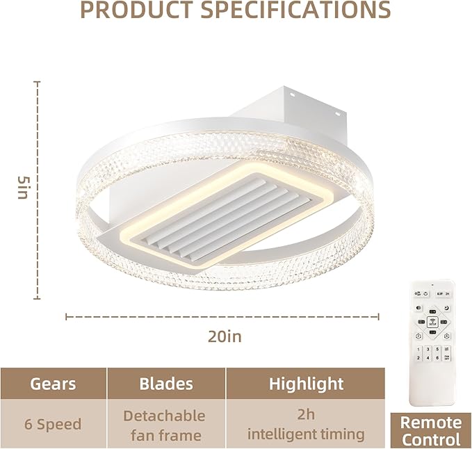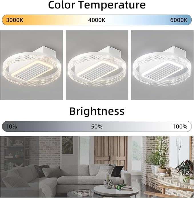- Dimmable Lighting: The ceiling fan lights can be switched between white light, neutral light and warm light through the remote control. You can adjust the brightness to your desired level.