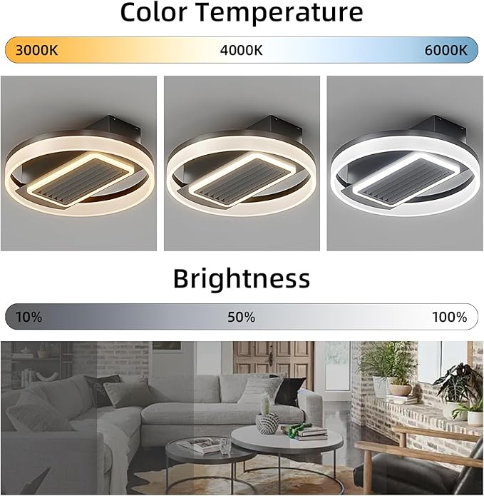 - Dimmable Lighting: The ceiling fan lights can be switched between white light, neutral light and warm light through the remote control. You can adjust the brightness to your desired level.