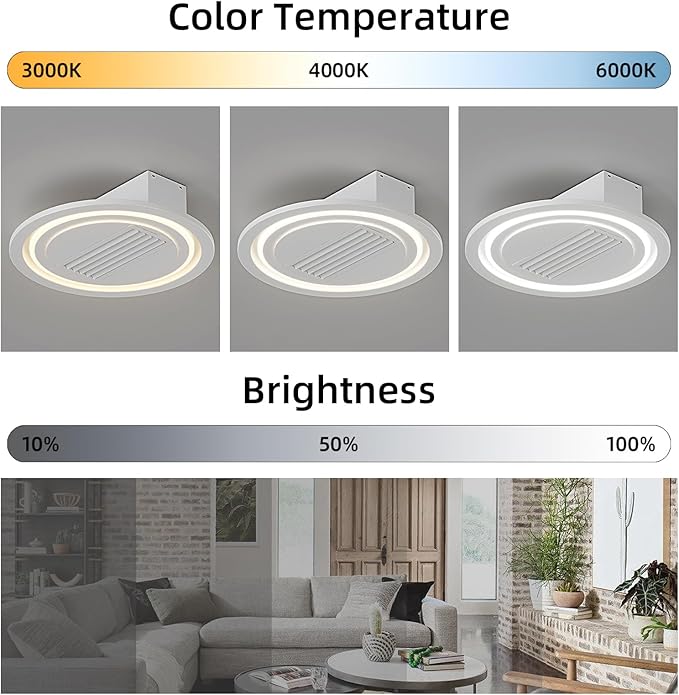 - Dimmable Lighting: The ceiling fan lights can be switched between white light, neutral light and warm light through the remote control. You can adjust the brightness to your desired level.