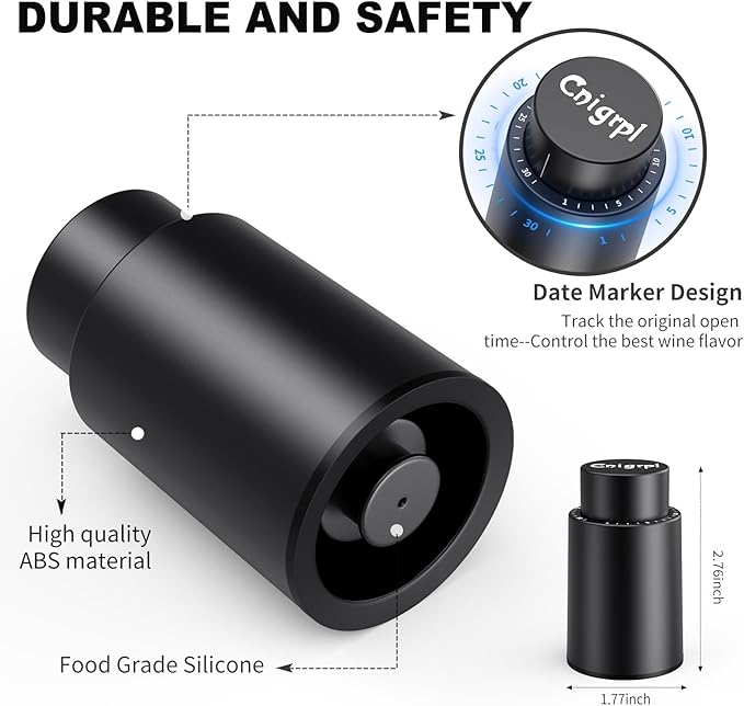 - 【EASY TO USE】Just insert the Cnigrpl vacuum stopper into the wine bottle and pump it several times to seal the bottle air tight, it's vacuumed perfectly and easy to use for wine preserver.