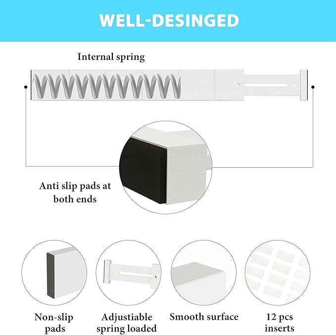 - DRAWER FRIENDLY DESIGN: The ends of our drawer dividers feature non-slip pads to keep them in place and protect your drawers from scratches, keeping your utensils, clothes and cosmetics safe enough