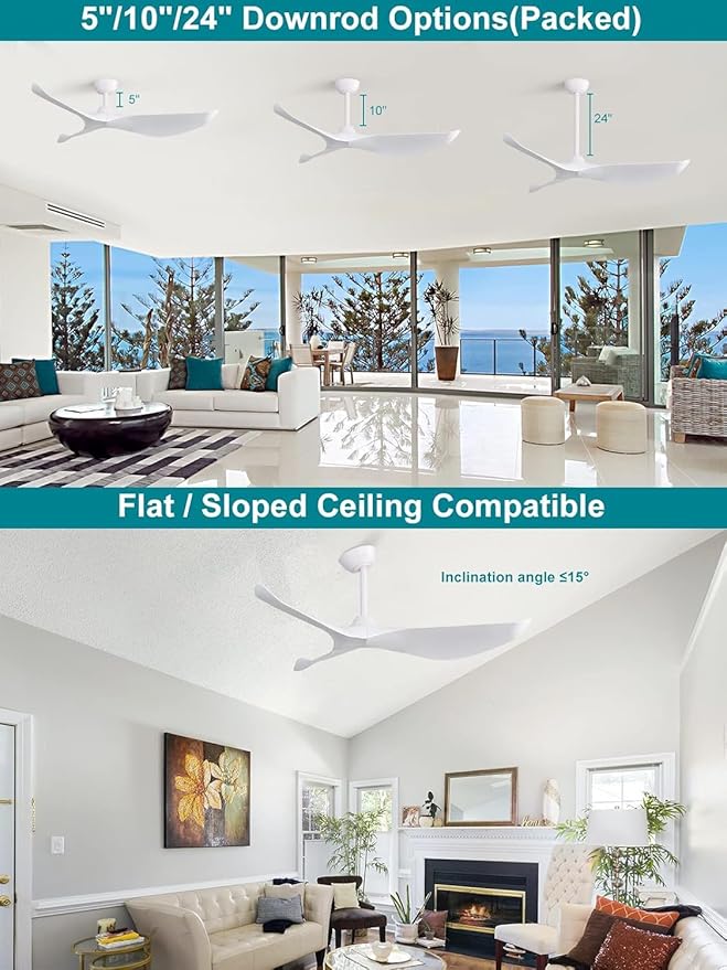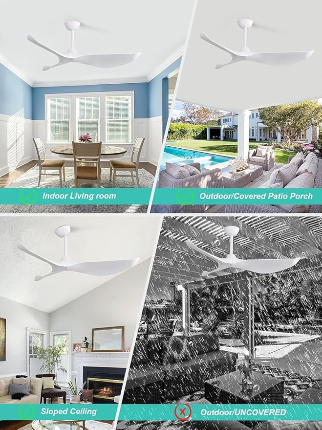 - Outdoor & Indoor Ceiling Fan: The 3 blade ceiling fan combines with white finish and white ABS blades, moisture-proof level, great for any indoor and covered outdoor space, living room, bedroom, child room, covered patio and covered porch.