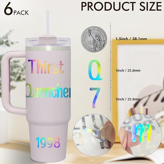 - Perfect Fit for Stanley Cups: These shiny stickers are designed to perfectly fit your cups, crafts, phone, laptop, skateboards, cars, etc. Contains 6 sticker sheets with 3 different styles of shiny letters, each letters approximately 1 inch