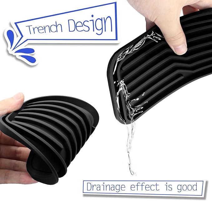 Waziaqoc 2 Pcs Refrigerator Drip Tray, Drip Catcher for Water Tray, Non-slip Silicone Dispenser Drip Collector for Drainage(Black)