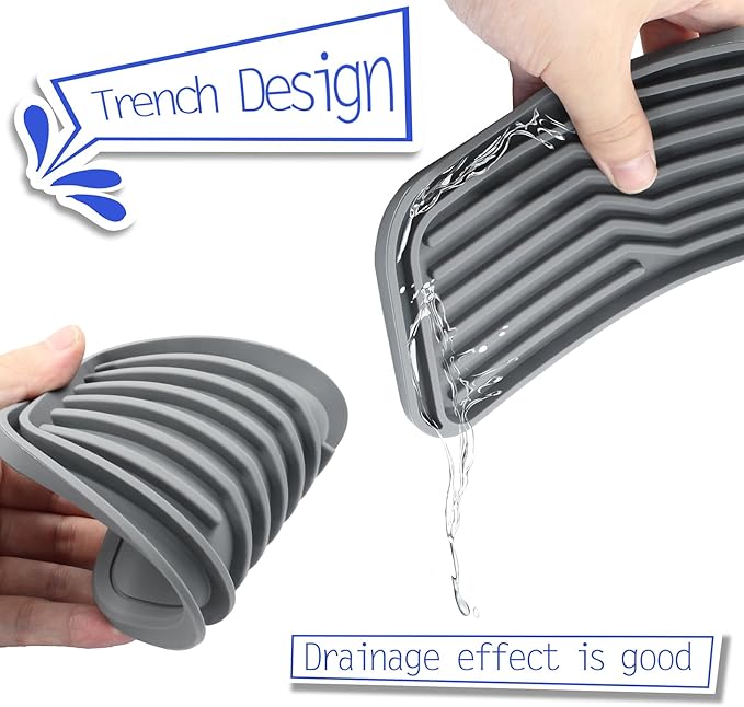 Waziaqoc 2 Pcs Refrigerator Drip Tray, Drip Catcher for Water Tray, Non-slip Silicone Dispenser Drip Collector for Drainage(Grey)