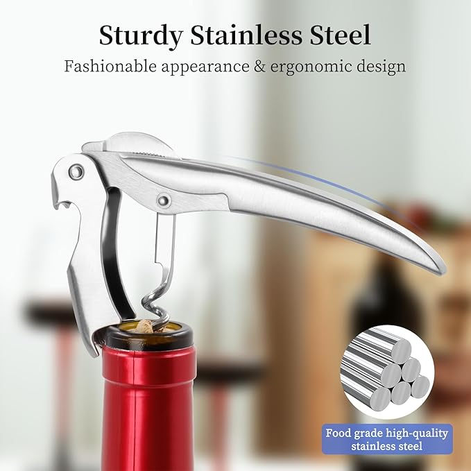 - 🌳[Premium Food-Grade Stainless Steel] - Crafted with precision, this wine opener boasts an elegant design and is constructed using high-quality stainless steel. Its refined and durable structure ensures long-lasting performance. It has successfully passed rigorous food contact safety tests, meeting the standards set by various countries including the United States, United Kingdom, Europe, and China. You can confidently enjoy your wine knowing that this opener prioritizes your safety and peace of mind.