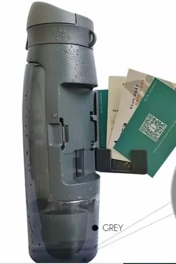 Water Bottle with Storage Compartment and Key Holder, Grey, MP- W02