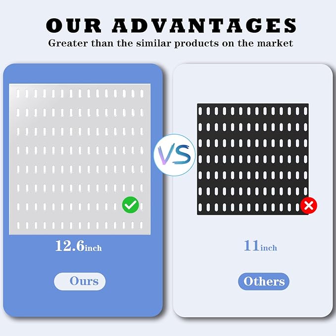 - Cost-Effective: This Pegboard Combination Kit is adjustable and removable. This new set is12.6"X12.6", bigger than the formal 11”X11”. The 20 accessories show more cost-effective than the formal 16 accessories