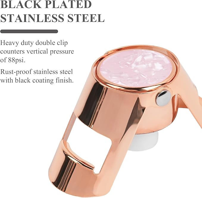 LIZIMANDU Champagne Stopper, Stainless Steel Bottle Plug Sealer for Sparkling Wine, Superior Leak,keeps Wine, Champagne, Prosecco, Cava, and Sparkling Wine fresh longer(1-Rose Gold)